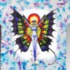 The “Butterfly Lady” men’s t-shirt with rainbow wings is an original fantasy art piece and old classic of Ralphies from the 1970s. Men’s t-shirt. Recently re-designed in 3D and made into a tapestry size work of art that can be purchased on the artists graphic art website Infinitee Designs at: Butterfly Lady prints.
