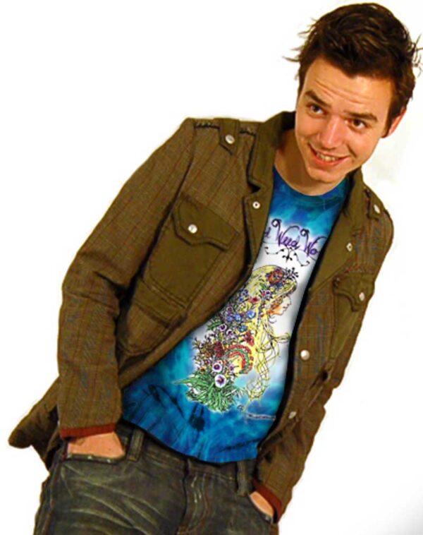 The “Wild Weed Women” men’s fantasy art t-shirt was created for a friend while I was living up in Humboldt County, California… She owned an organic, healing herbs, and natural cosmetic products business. She just had to have this shirt produced because she was a “Wild Weed Woman”. Surrounded with wild flowers, a beautiful young girl with flowers in her hair.