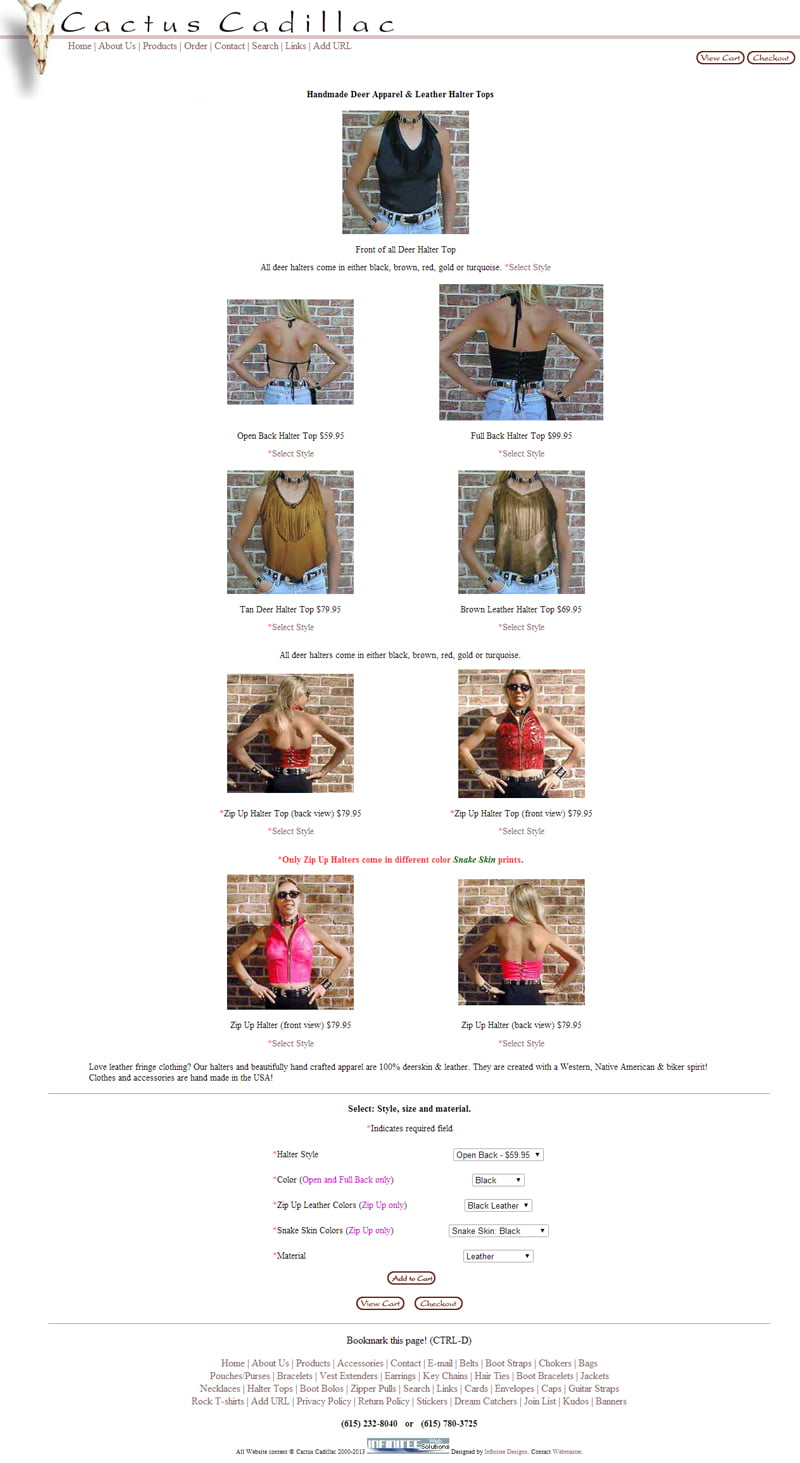 Cactus Cadillac eCommerce Web Design – Women’s Halter Tops